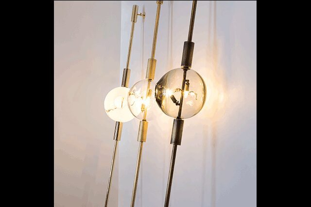 Street Cred: Growing up in Istanbul, Koksal “was enamored by the city’s rich history and culture,” she says. Turkey has since become a muse for the New York-based designer, who came into art by following in the footsteps of her painter grandmother. She turned her attention to lighting design when she founded Feyz Studio in 2016 “because light—natural and artificial—can activate a space and evoke different emotions,” she explains. Her Lean Light represents the dramatic Basilica Cistern in Istanbul. Its glass spheres are “made with the intention of being beautiful art pieces themselves,” she notes, with the difference in glass thickness causing a dispersion of light. Gold leaf is added to the globe, and when lit, it resembles constellations. “I am inspired by imperfection,” Feyza says. “The imperfections of the glass and metal finish add character and carry the marks of a craftsman.”