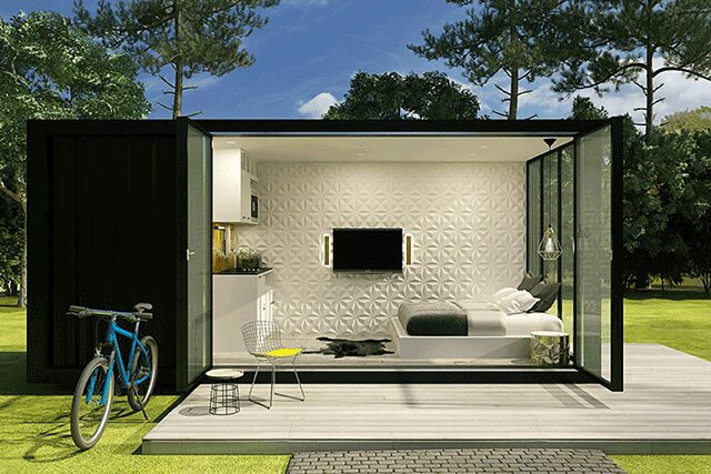 I wanted to maintain a minimalist design concept complete with modern and minimalistic interiors that give way to dramatic panoramic views. I wanted to make certain the interior décor did not overpower the natural design appeal of the shipping container. The use of large windows and glazed doors that provide uninterrupted views of nature are equally significant in creating a quiet place for renewal, reflection, and rejuvenation.