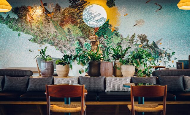 A mosaic mural enlivens the Gachot Studios-designed Wild Days rooftop bar at Eaton DC