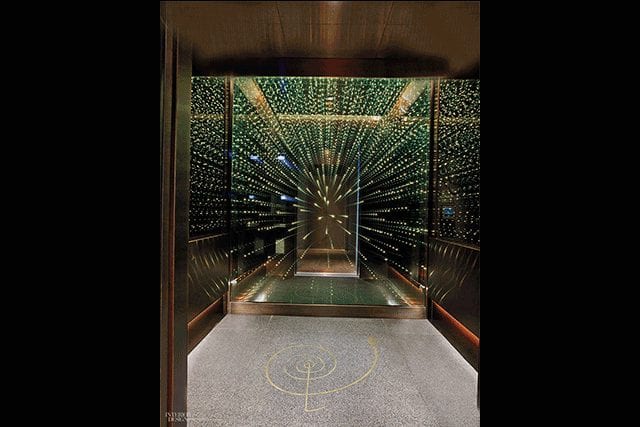 So he started studying biogeometry, the science of space energy balancing, and practicing radiesthesia, the idea that electromagnetic frequencies can be perceived and altered with objects that promote positive energies, hoping to devote his career to balancing out disruptive energies in spaces. Amura divides his process into three phases. First, he analyzes “the energies of the space inside.” Then, he works with the designer to pick materials and colors that flow with the energy of the space. Finally, he visits the nearly finished property and places a feng shui cure, usually in the basement or within the foundation. The end result, Amura says, includes crystals tucked away in the walls, while mandalas—spiritual symbols most commonly associated with Buddhism and Hinduism—that he designs adorn the floors of entrance lobbies and other areas to “bring peace and harmony into the space.”