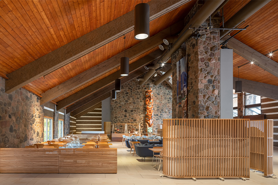 Local wood clads the McMichael Café in Ontario, a project conceived by Denizens of Design to reflect the work of the Group of Seven artists