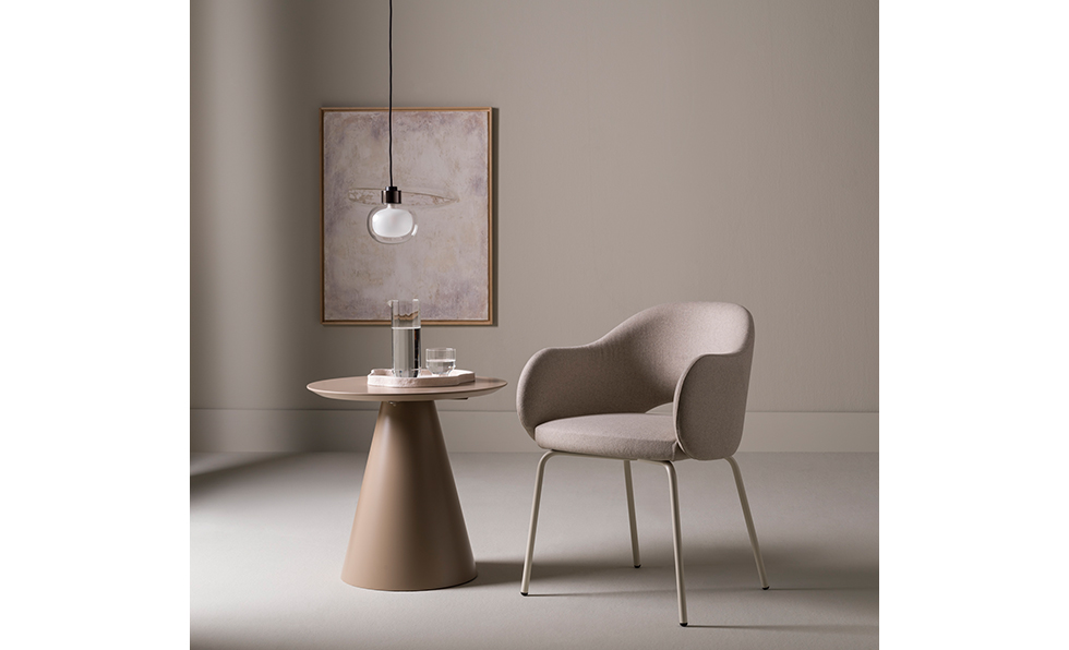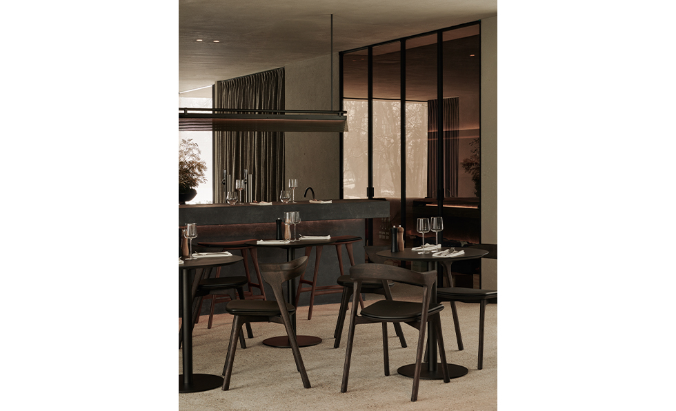 With interchangeable tops in numerous finishes, Blend from Ethnicraft delivers a compact and adaptable bistro-style table design. This fall, the collection will add a larger 35.5-inch option to complement the original 28-inch size.