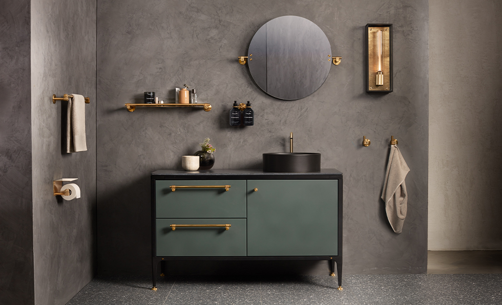 The Cast line from Buster + Punch comprises cabinet hardware, bath accessories, and mirrors that mix industrial inspiration with elegant details like hand-cast grips, knuckles, and sleek polished machined bars.