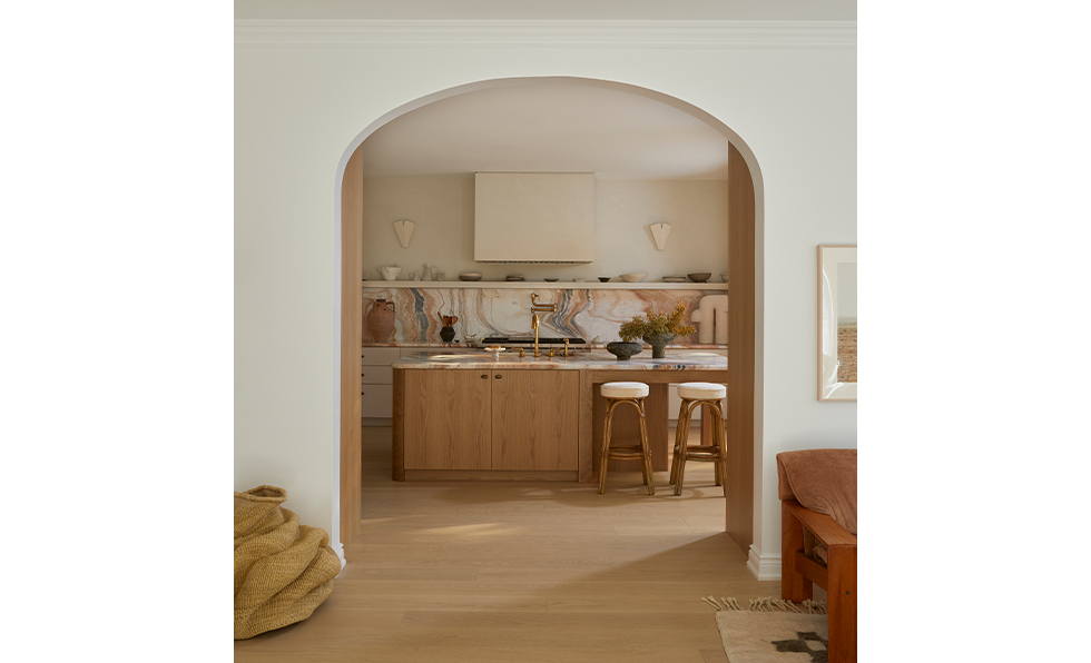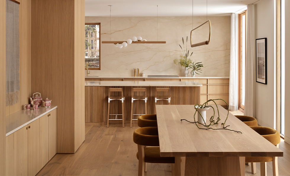 From Moncer Flooring, the brushed and knot-free European oak hardwood in the company’s classic white oil finish is featured in a home in Toronto from local firm Montana Burnett Design.