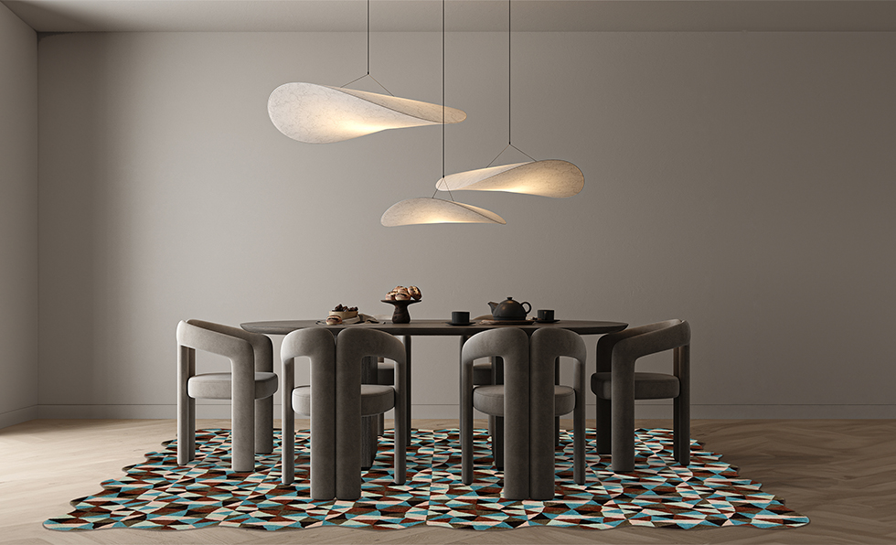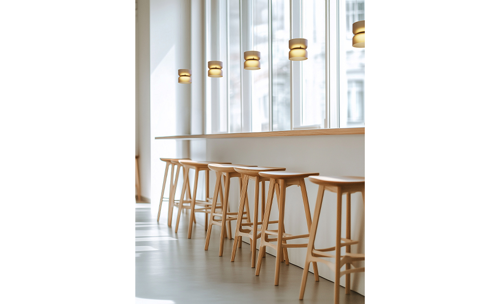 Totem is a modular LED pendant system from Pablo Designs featuring handblown opal glass shades in four sizes that can be mixed in single or double combinations to form up to 20 configurations. Each shade contains its own dimmable light engine, allowing for customized groupings that offer both direct and ambient light.