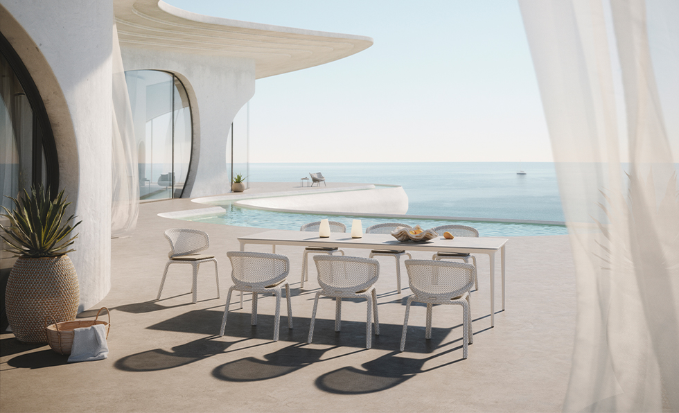 Handcrafted by Dedon’s master weavers, the curvaceous Seashell Nuo range by Jean-Marie Massaud introduces the eco-friendly EcoCycle Fiber, made from 90 percent renewable plant-based resources.