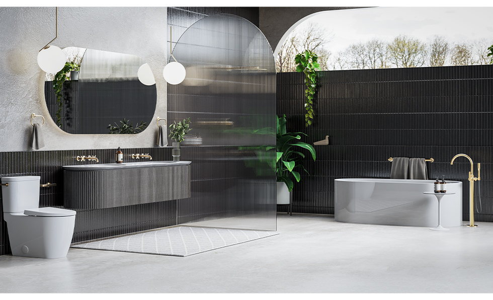 Listra from Grohe features soft, sculptural lines and striated rings inspired by jewelry. Its balanced proportions—from a solid pedestal base to curved silhouettes—bring subtle texture and visual interest across its five finishes.