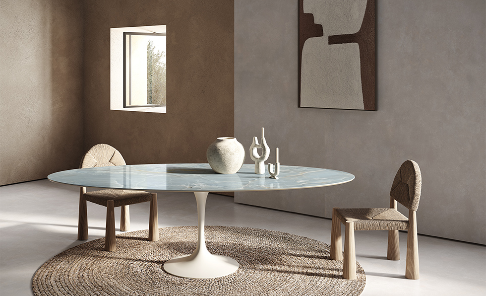 Offered in multiple shapes and sizes, Casalgrande Padana debuts Convivialis, a range of tables with porcelain stoneware tops that feature Bios Antibacterial technology, highlighting the brand’s range of surface finishes.