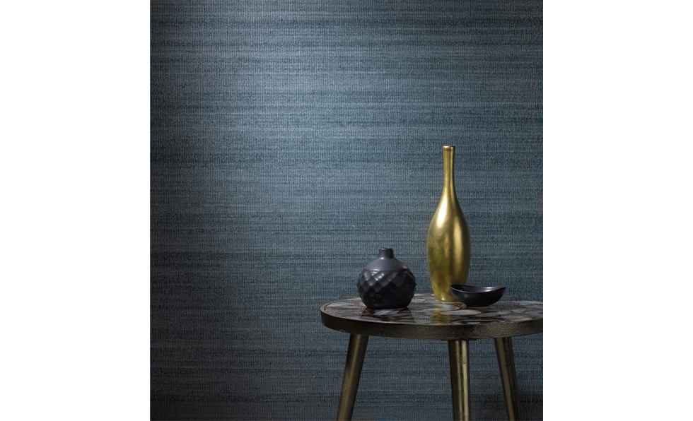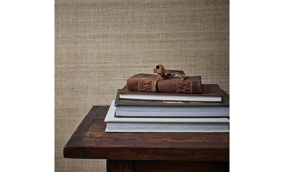 Rapidly renewable abaca fibers and a hint of shimmer merge in Abaca from Phillip Jeffries, a grasscloth wallcovering where a woven scrim showcases a metallic ground underneath for a soft, luminous sheen, while each panel is laminated and treated with a stain-repellent finish.