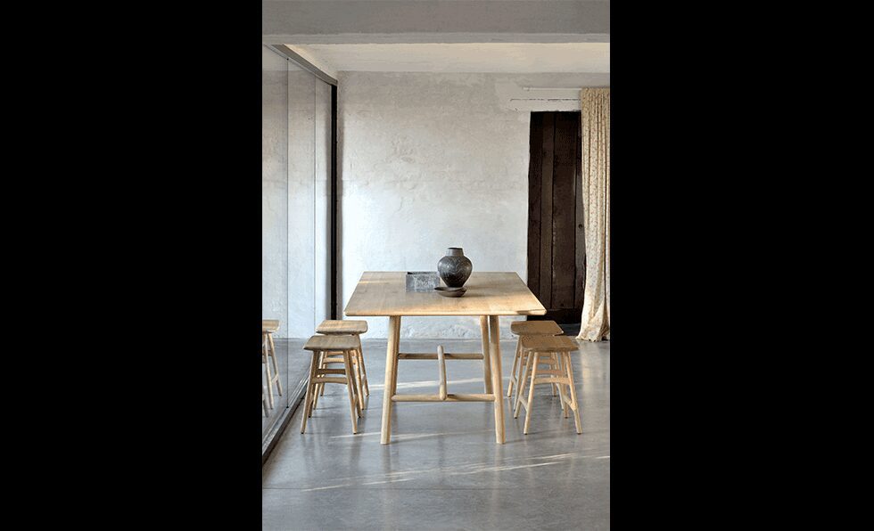 The Oak Nexus dining table from Ethnicraft creates the illusion that it is a single carved piece of wood, employing seamless transitions from shape to shape. An accompanying dining chair is also available.