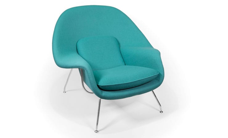 The Eero Saarinen Womb Chair designed for Florence Knoll and reproduced by Rove Concepts features hand-stitched upholstery in premium boucle wool imported from Denmark. The chair’s chrome finish base is chip and flake resistant, and showcases flex angle and height-adjustable floor protection pad discs.