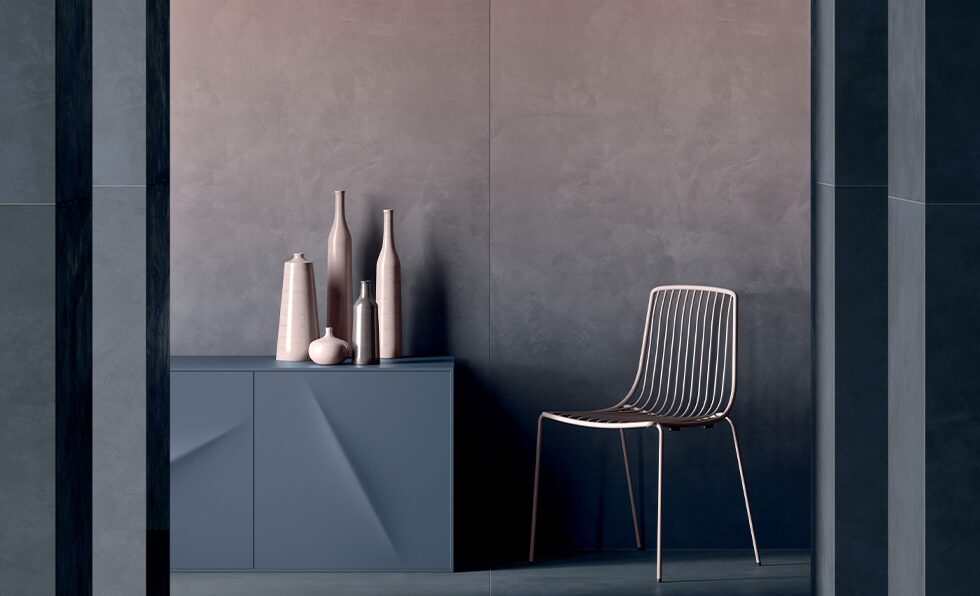 Ceramiche Caesar’s Join series of porcelain tiles combines the material effects of concrete and resin in 10 colors, each with a dappled, almost cloudy surface quality. Each of the four options gives the impression of ceramic wallpaper.