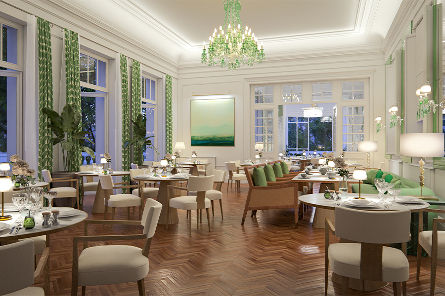 A rendering of the terraced restaurant at the forthcoming Baccarat Hotel Rome, which overlooks the Via Veneto