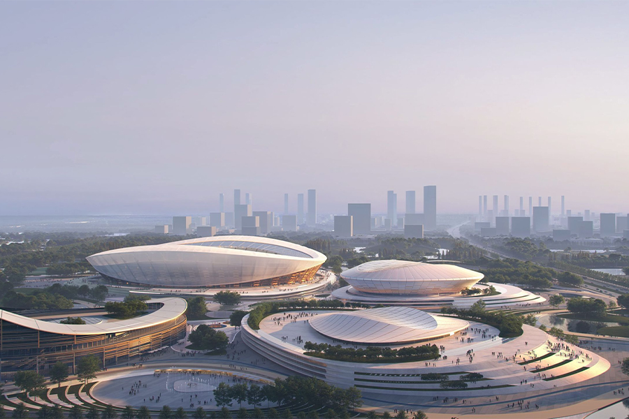 Around the world, the stadium is evolving into a central hub for development. In China, the Wuxi Olympic Sports Center, designed by gmp Architects, is part of a 140-acre park with a fitness center, hotel, apartments, and commercial facilities. “Enabling fans to dine, shop, and socialize nearby before and after events increases pre- and post-event spending and extends stay time as people arrive earlier and leave later,” says gmp Architects director Martin Glass. “An inclusive, accessible, and locally embedded venue promotes social and community integration.”