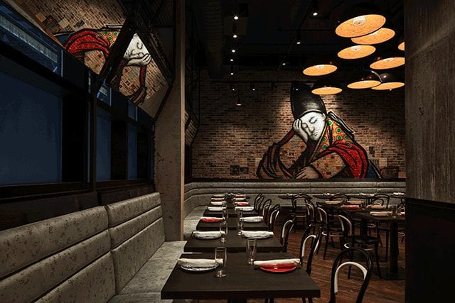 Located inside New York’s Arlo NoMad, Massoni, one of the latest concepts from Three Kings Restaurant Group, blends true Brooklyn grit with a modern take on Italian tradition. In the intimate dining room, a dismantled shipping container houses faded botanical upholstered booths, while an urban mural of a sleeping Cardinal presides over the entire room. It’s the warm glow from the light installation on the ceiling at night that creates the restaurant’s ambiance, which offers an “Italian rococo quality,” says Workshop/APD cofounder and principal Matthew Berman, and is a “nod to Italian design and style.”