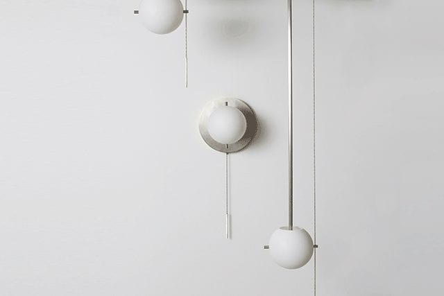 Custom pieces in the Spaniard prompted the creation of the firm’s own collection and product brand, Homework, named because “I love the learning that goes along with actually making something,” says Haslegrave. For him, it’s about the process: exploring new materials and ideas—sparked by a color, proportion, or texture from an interiors project—through research, practice, and repetition. The finely balanced Swing pendant, for instance, is made with handblown glass that rests on a silver arm.