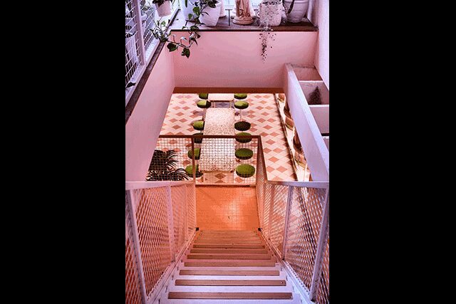 Sydney design firm Pattern Studio was tasked with turning an “underwhelming, cramped, poorly planned space into something open and free flowing,” co-director Josh Cain says of Locura, a South American-inspired bar found in the coastal town of Byron Bay, Australia. The pared back aesthetic recalls “the low-fi charm of late-night venues across South America” and “celebrates the region’s natural beauty,” he says. The three bathrooms, however, are a departure from the monochromatic interiors. “[The lighting systems] create a lovely, soft wash of color reminiscent of an immersive James Turrell installation,” says Cain, adding that they have independent controls managed by a smartphone app that alters the overall illumination. “We loved the idea of amping up the experience in here and making it feel quite strange and theatrical.”