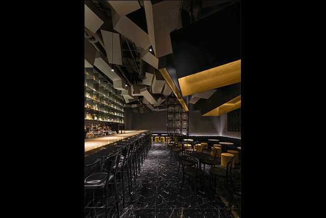 Architecture and design firm OHA Shanghai designed Bar No. 3 as an intimate cocktail lounge “favored by the low-key fashion set,” says Pundole. Sofas and low-level seating options mix with wood details and exposed concrete for a casual, industrial feel.