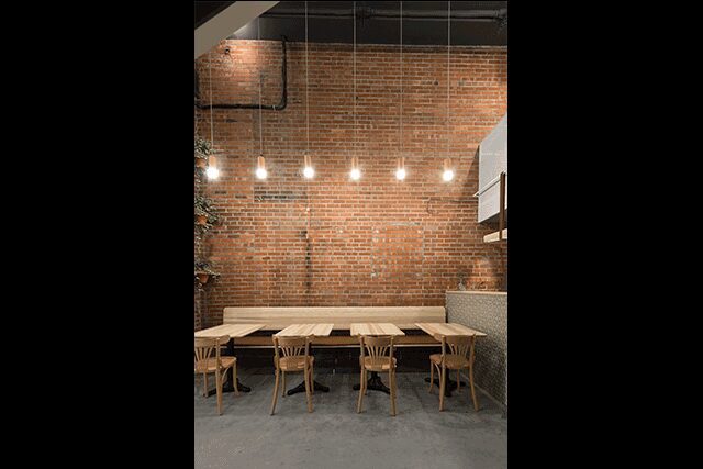 Local architect and photographer David Dworkind handled the interiors of Jouney, the Lebanese bakery and café concept located in the heart of Montreal with a design that pays homage to the seaside town of Jounieh in Lebanon where owner Patrick Abdelahad grew up. Dworkind dressed the long, narrow restaurant in a simple material palette consisting of ash wood, powdercoated steel, brown leather, and terracotta—a nod to the tiled rooftops found in Lebanon. In addition, handcrafted terracotta pendants line the restaurant’s ceiling and banquette seating lines the brick walls. An I-beam spans the restaurant floor to accommodate a large communal table, while the perforated steel staircase leads to a mezzanine with additional bar seating that overlooks the restaurant.