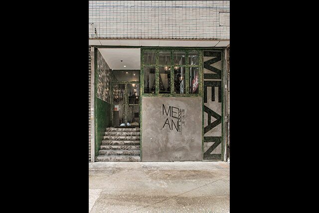 OpenUU design duo Caroline Chou and Kevin Lim didn’t only craft Hong Kong’s Mean Noodles, they own and operate it as well, “infusing our love of good design and our passion for delicious food” into a sleek noodle joint, Lim explains. Located in a back alley off NewMarket Street in the Sheung Wan area, the goal was to create a speakeasy-type space specializing in Southeast Asian noodles that would also blend into the neighborhood, thanks to a subtle green stainless-steel entrance. Chou and Lim were inspired by Malaysian Batik fabrics, an abstraction of which makes up a patterned-tiled wall. “The colors are light and vibrant with carefully crafted lines and floral patterns on the fabrics,” Chou adds. Marble tabletops and mosaic tiles complement the open kitchen’s green grout-finished subway tiles and mustard-colored seating. Interior finishes extend to the alcove just beyond the entryway, “setting the mood for customers as they enter,” she notes.