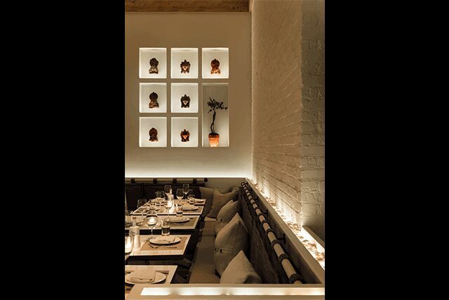 “On the one hand, we wanted the space to be transformative as well as a refreshingly calm experience in direct contrast with the fast pace of the Flatiron District just outside,” firm founder Cass Calder Smith explains, “but at the same time, we wanted this location to feel like the decidedly urban update to the original Kyma location on Long Island.”