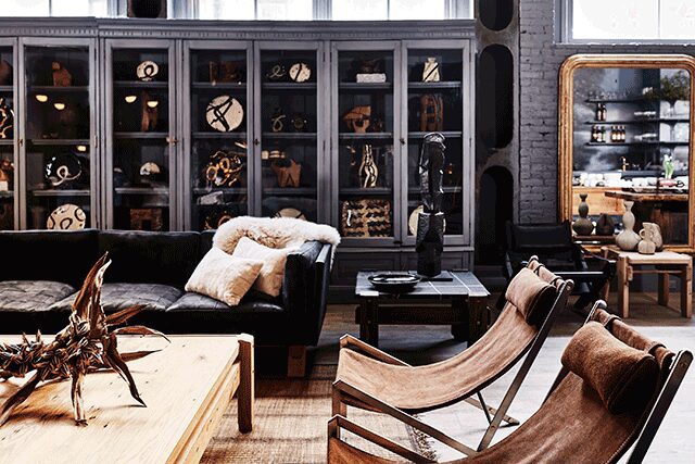 The details: When opening their flagship store, the two-story Roman and Williams Guild—a hybrid showroom and restaurant with a bookstore and flower shop in New York’s SoHo neighborhood—Robin Standefer and Stephen Alesch, the duo behind successful firm Roman and Williams, wanted a place that resembled Parisian cafés with a distinct retail component. Spanning 7,000 square feet, the ground floor is filled with aromas from both chef Marie-Aude Rose’s French café La Mercerie (a partnership between the pair and longtime collaborator, restaurateur Stephen Starr) and Emily Thompson Flowers’ fresh blooms. There’s also an area to showcase the Founding collection—the duo’s line of furniture, lighting, and accessories—as well as pieces collected from the workshops of craftspeople the world over.