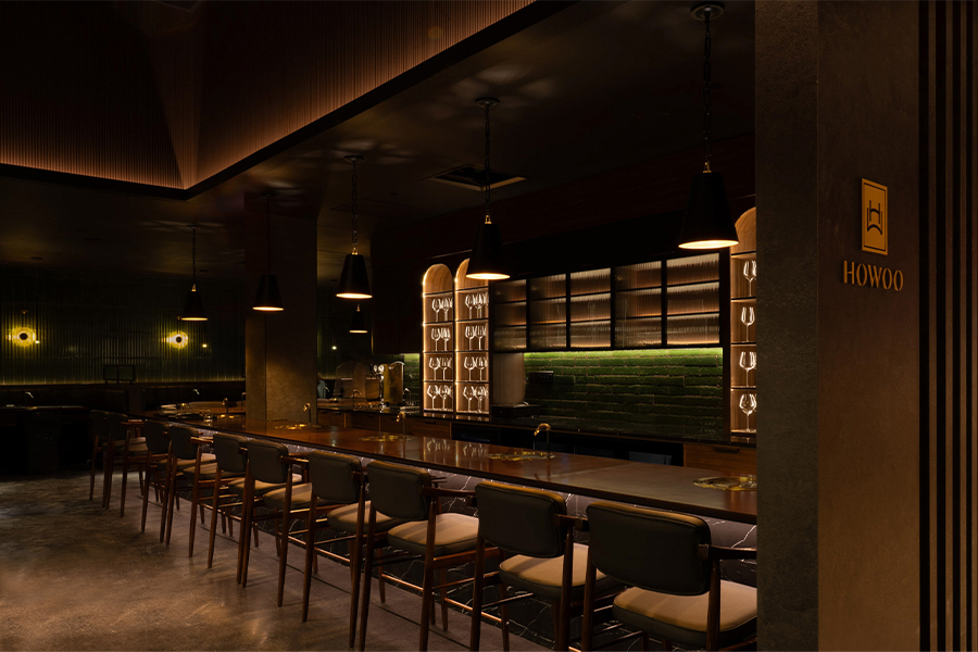 Though bound by a mutual foundation of Korean style, each space showcases its own interpretation. At DubuHaus, warm woods, natural textures, and tools convey classic dubu craft. Howoo, meanwhile, employs heavier, more architectural elements that take cues from hanok roof tiles and the structure of Korean barbecue rituals, and Musaek conveys Korean minimalism through shadows, metal, and fluid forms that reflect its ever-shifting identity.