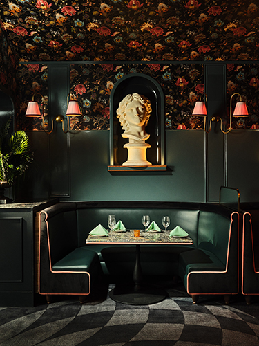 Then there’s Experimental Cocktail Club in New York’s Flatiron area, a subterranean lounge space bedecked with Art Nouveau influences and modern design flourishes located below La Compagnie wine bar, which features celestial-inspired interiors thanks to light fixtures with cosmos motifs and moon-themed fabrics. Both spaces are the handiwork of Paris-based designer Dorothée Meilichzon.
