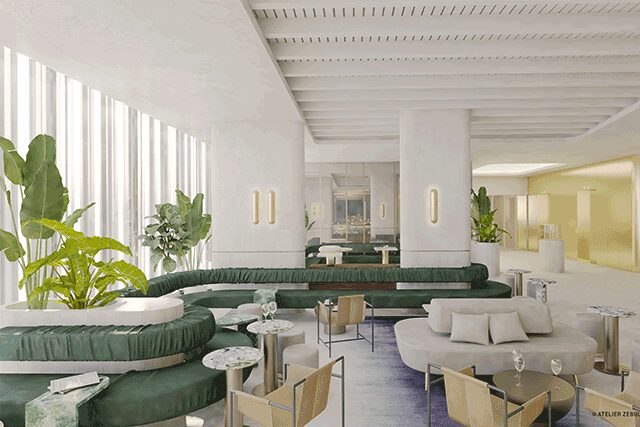 Four Seasons Hotel Montreal > When the Four Seasons comes online this spring, it will be a welcome addition to the city’s chic Golden Square Mile neighborhood. Connected to the Ogilvey department store, local firms Lemay and Sid Lee Architecture constructed a showstopping exterior that is wrapped in a gray-tinted glass curtain with a gold finish and incorporates noble materials like granite and marble. This hints at the tantalizing look inside. Owner and developer Andrew Lufti wanted something bold and surprising but also radically different, recalls Four Seasons’ vice president of design Dana Kalczak. Enter Paris firm Gilles & Boissier, which translated that brief into seductive details, including a guestroom cocktail bar installation housed in a round brass metal frame that doubles as a piece of art. “The entire design is based on providing the ultimate haven for relaxation and fun,” she says. A highlight will be Samuelsson’s namesake restaurant on the third floor. Modeled after a traditional brasserie, local firm Atelier Zébulon Perron crafted a series of spaces that combine the chef’s Scandinavian background with the city’s French influences. “We had a lot of ambitions for the space,” says founder Zébulon Perron, but the biggest challenge was “making sure the sequence [of rooms] works well and people feel comfortable.”