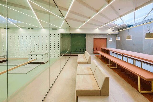 At Friends Call Me Jim in Amsterdam, local firm Tank envisioned a playful yet functional gym perfect for children and their parents alike. Broken into two sections, Playscape houses boxes, slides, monkey bars, and a climbing wall, and Lightscape uses lights and projections on the floor to form a trail of hurdles and obstacles that create a user-friendly virtual world. “Color was key,” says Tank founding partner Sanne Schenk. “We balanced the vibrancy and exuberance of the children’s universe with modern hues that were equally appealing for grown-ups.” In fact, the relaxation lounge in the back is outfitted with glass walls that offer a full view of both playrooms, so parents can “join in on the fun, socialize, unwind, and even do some work without losing sight of their kids,” she says.