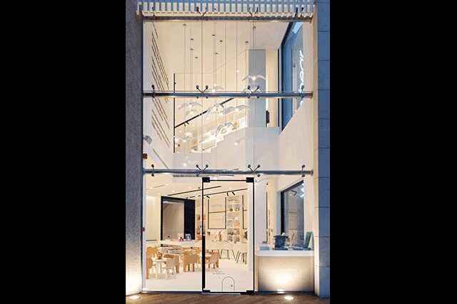 The materials and colors used in White and the Bear, a hybrid store and restaurant in Dubai, are intended to spark creativity without being kitschy, says Sneha Divias of locally based design firm Sneha Divias Atelier. “When designing for younger ones,” she says, “it is important to have a prevalence of earthy, neutral tones rather than primary and secondary colors often used in fast food chains.” Bespoke full-height shelving displays merchandise and light wood-clad counters, stairs, and chairs add warmth to the minimal white and black interiors. Beyond, the retail area blends with the ground floor restaurant and extends upstairs through a black metal arch. (The space also counts a reading corner and event spaces for birthday parties and workshops.) Though the design is pared back, it still offers some whimsical novelties: Simple bear and bunny graphics line the walls, while an installation of hanging bird lights greet guests at the entrance, leading them into what Divias says is “the perfect environment for enhancing their imaginations.”