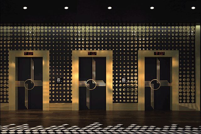 Cymbals will line the black and gold elevator vestibule at the Renaissance Harlem, shown in a rendering
