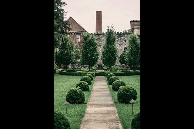 Set on 113 sprawling acres in Frankfort, Kentucky, the European-inspired castle and peristyle springhouse developed by pioneering distiller Colonel E.H. Taylor Jr. in 1887 laid vacant for more than 40 years until Will Arvin and Wes Murray took over, spending nearly four years restoring the 130-year-old distillery into Castle & Key. Working with designer Donna Winfield of Winfield Studio, the founding partners transformed 22 dilapidated buildings into a boiler room, tasting room, retail space, and an aging warehouse with a capacity for 35,000 barrels, among other amenities. “The structures, architectural artifacts, and timeworn finishes of the buildings are so beautiful that it was paramount they take centerstage,” Winfield says. Honest materials, including brick, stone, and concrete, provide an authentic touch, while leather and wood furnishings and Oriental rugs create a cozy environment. Matching the quality of the locally sourced spirits, landscape architect Jon Carloftis’ sunken gardens invite patrons to taste test while taking in the lush grounds.