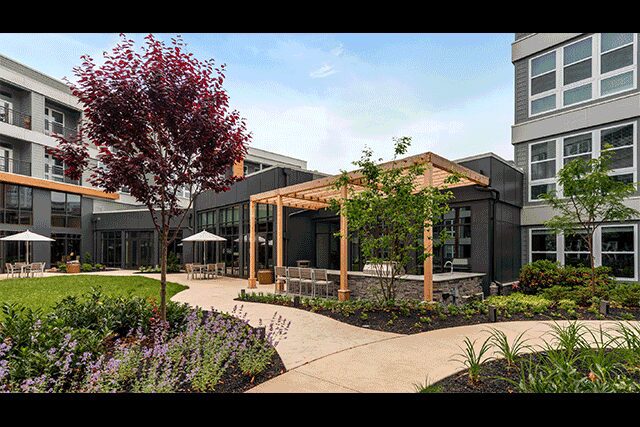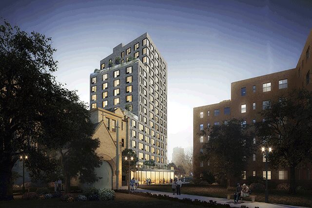 Ingersoll Senior Residences > Billed as the first LGBTQ+-senior housing in New York, the 125,000-square-foot Ingersoll Senior Residences from developer BFC Partners and organization SAGE will also be the largest affordable gay-friendly housing in the nation. Opening in July, the 17-story, 145-unit mixed-use complex was designed by New York firm Marvel Architects to fit on a relatively small footprint in Brooklyn’s Fort Greene neighborhood. “We put the tallest part of the building on the corner facing the park and stepped it down,” says Guido Hartray, Marvel’s founding partner. The roof deck will feature a community gardening program with ADA-compliant planters, allowing residents with varying levels of mobility to grow produce and interact with neighbors. “Isolation can be one of the most detrimental impacts on healthy aging,” says Hartray. “The quality of Ingersoll’s spaces will bring residents together and elevate tasks to heighten their social impact.”