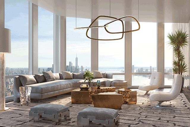 15 Hudson Yards > Part of Related Group’s sprawling Hudson Yards development on the west side of New York, the glass-wrapped, 88-story 15 Hudson Yards from local firm Diller Scofidio + Renfro lends itself to more restrained interiors conceived by Rockwell Group, which chose a palette of walnut, travertine, and limestone to highlight Hudson River views from the 285 private residences. An alluring addition is the dedicated wellness floor on the 50th level that would rival any hotel. “By creating a rich, meticulously detailed palette of natural materials while making the most out of the building’s orientation and daylight, the wellness amenities underline the extraordinary views of the city’s dynamic, ever-changing skyline,” says the New York firm’s founder David Rockwell. Guests can swim laps in the 75-foot-long pool or relax at the private spa. Rounding out the space is a beauty bar with hair and makeup services, a fitness center designed by the Wright Fit that offers yoga and group classes, and a children’s imagination center.