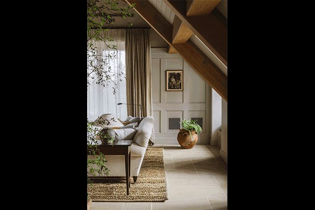 Links to the past abound, including marble fireplaces that bear original owner John Lefevre’s coat of arms, while oak shutters enclose sash windows with vistas out to the bucolic grounds. The reawakening has also called for contemporary additions that speak to the countryside: Rough-hewn lime plaster evokes an earthy quality, rich English oak provides an interplay with light, exposed brickwork offers an organic element, and tactile Irish linen dresses beds in the 46 bespoke rooms and signature suites. The muted color palette is the harmonious backdrop for paintings by British artists—all from Chan’s personal collection—found throughout the public spaces, which are meant to be used at different times of the day in response to the sun’s movement.