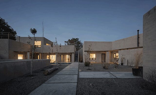 The details: China’s rural Dawan Village in Ningxia, dotted with weathered, dusty dwellings, is located on the banks of the Yellow River, but its landscape also incorporates the desert. Shanghai-based DAS Lab did not want to disrupt these distinctive environs when creating the Lost Villa Boutique Hotel, so the complex of 15 flat-roofed buildings—essentially a small village strung together by wooden walkways and low-walled courtyards—is in dialogue with the tree-covered surroundings.