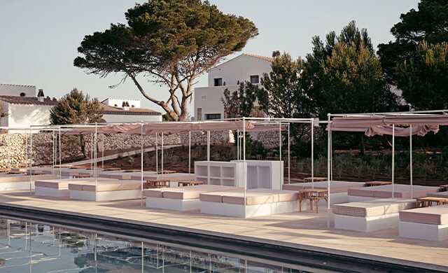 Ranging from pale blue and golden yellow to vibrant rust tones, the hotel’s color palette takes its cues from the many hues of the Menorcan sky at sunrise and sunset. This inviting bespoke environment continues in the hotel’s 43 guestrooms, with colorblocked headboards complementing terracotta floors and views of the lush, unspoiled setting. Also included among the hotel’s offerings are nine private bungalows with dipping pools, a vegetable garden, cocktail bar, and interior and al fresco restaurants that embrace local ingredients.