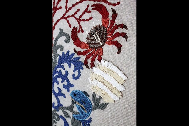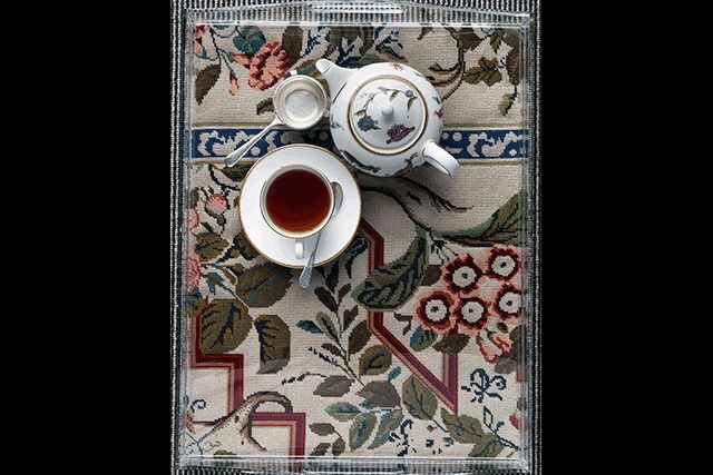 Under the Rainbow Tree is one such piece, and it can be found at the Ham Yard Hotel. We wanted to extend the appeal of Fine Cell Work to designers and interior decorators, so we developed the range to include a headboard, footstool, breakfast tray, lampshade, and mirror.