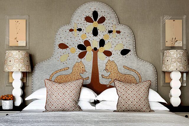 Headboards introduce drama and detail. They can be used as artwork in a bedroom and provide a wonderful opportunity to show off beautiful designs on a large scale. We collaborate with very talented artists and artisans who create one-off detailed appliqué and unique embroidered designs. I am always championing crafts and beautiful handiwork—the touch of the artist or craftsman’s hand always enhances the story behind a piece. Every headboard tells a story.