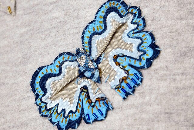 One of our favorite artists, Kumi, creates exquisite designs using vintage kimonos sent from her mother in Japan. My brother introduced me to her work when he bought me a bag made and embellished by her for my birthday. Kumi is so quiet and unassuming, she had never thought about embellishing a headboard before. But as you can see, her attention to detail, observation, and execution of her art is exemplary.