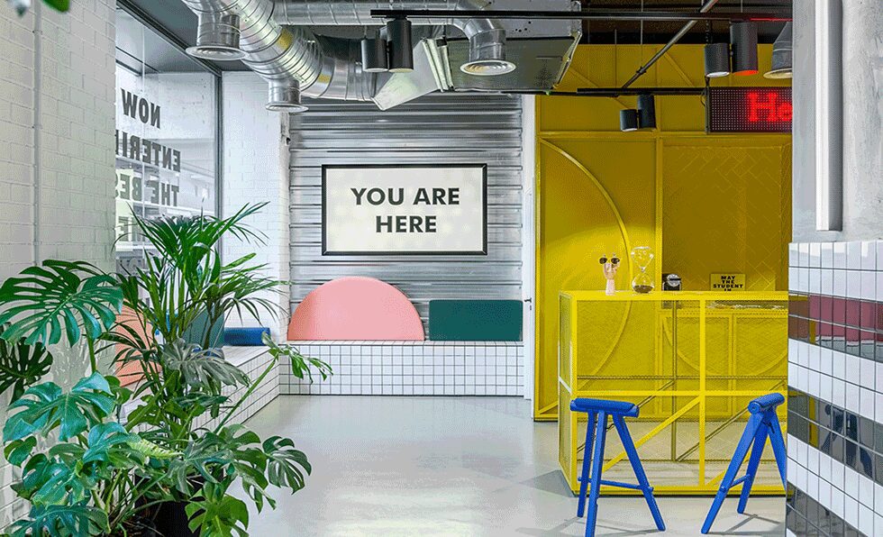 Dorm life has come a long way from uninspiring, drab quarters. Look no further than Valencia-based firm Masquespacio’s vibrant, playful interpretation at the Student Hotel Campus Barcelona.