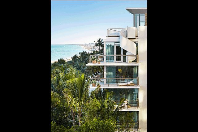 Once a vibrant Rat Pack hangout, the Seville Beach Hotel helped define the glamour of Miami in the 1950s. When it morphed into the Miami Beach EDITION in 2014, Yabu Pushelberg honored this glitzy heritage, carefully preserving such elements as the lobby’s black and white stone floor and gold mosaic-clad columns, which were initially a roadblock for Ian Schrager (who developed his first hotel there, the Delano, some 20 years ago). “There was a lot of gold, but [in the end] we were able to do a very refined beach resort that feels like Miami,” he explains.
