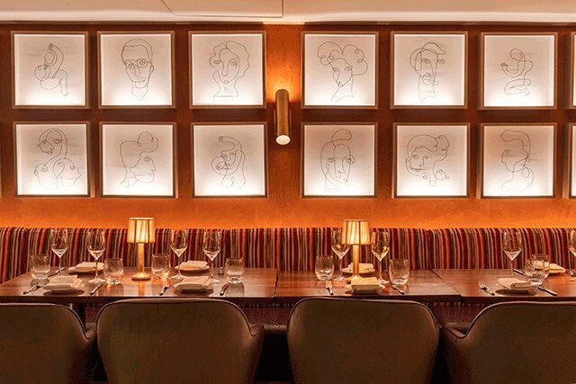 Several modern installations, such as the new Sarah Moore murals for Queensyard at Hudson Yards in Manhattan or the 20 stories of haute-cred graffiti produced on site at citizenM’s Bowery hotel have set the bar high for hospitality spaces as art galleries. “The incorporation of art, used in a non-precious but respectful way, creates an elevated and memorable experience that reveals an underlying story,” says Nancy J. Ruddy, founding principal and executive director of interior design for CetraRuddy. “It’s a respectful reference to a tradition of great New York restaurants with integrated art but interpreted in a fresh, modern way.”
