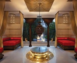 Tales of the great Mughal Empire tell of princesses bathing in lavish suites where milk, honey, and rose water poured freely amidst fully heated hammams where water flowed endlessly despite its scarcity. Gardens laden with exotic flowers sat amid streams and fountains—a remarkable feat in the arid landscape of modern day Utar Pradesh. It is this heavenly world that architect Pradeep Sachdeva and Bangkok-based P49 Deesign sought to conjure in their design for the Indian state’s latest (and largest) experience spa—Kaya Kalp, the Royal Spa at the ITC Mughal, a Starwood Luxury Collection hotel in Agra, the capital of the Mughal emperors from 1526 to 1658.