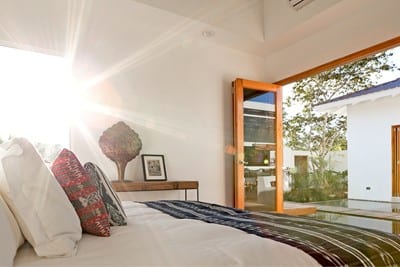 Overall, there is an open, indoor-outdoor feel in both the one- and two-bedroom villa. Each villa has a private plunge pool, and folding doors that open onto lush gardens.