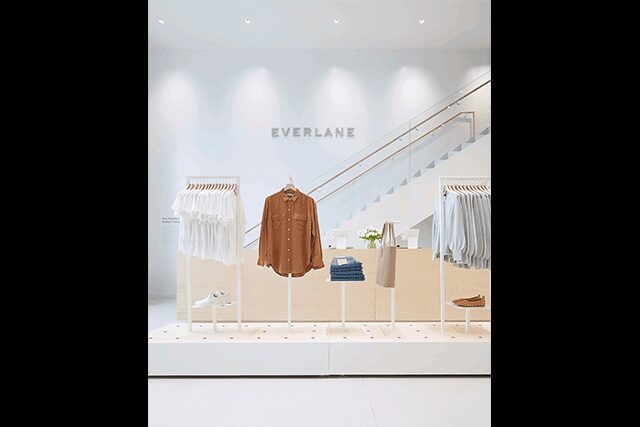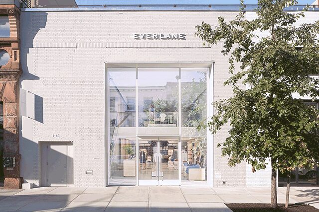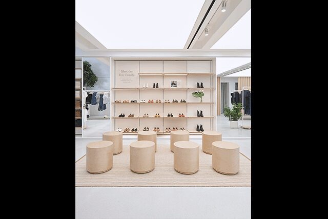 For Everlane’s Williamsburg, Brooklyn outpost—only its fourth brick-and-mortar location, and second in New York—the popular, mostly online retailer opted for an airy, minimal design from Wilkes-Barre, Pennsylvania-based Bohlin Cywinski Jackson (BCJ). The aesthetic is fitting for the brand, which hinges on classic styles and transparency in its process and pricing. Visitors enter the whitewashed brick building through a 20-foot-high glazed façade, leading to a 2,700-square-foot double-height space. The bright white walls are the perfect backdrop for Everlane’s simple items, with neutral-colored maple fixtures (designed by Everlane and BCJ) and shelving highlighting the tailored pieces. Other touches include polished concrete floors original to the building, a 700-square-foot mezzanine dedicated to menswear, a tree encircled by denim-upholstered bench seating, a ceiling lined with white louvers masking the mechanical and electrical systems, and a series of maple fins that screen the fitting rooms on both levels.