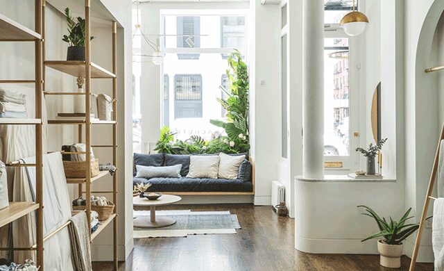 For the New York location of e-commerce linen brand Parachute, Jessica Helgerson of her namesake Portland, Oregon firm conceived a residentially informed space that is a “simple yet beautiful way to display linens,” she says. Included among the offerings is a sink to wash hands and try towels and comfortable seating that provides a tactile way to interact with the bedding, “rather than the staged beds that are so often in bedding stores,” she says. The bright, airy store is decked out in pale wood, brass accents, and hushed tones to not outshine the product. “The brand is known for its soft, inviting, and high-quality textiles,” she says, “and the space needed to reflect that.”