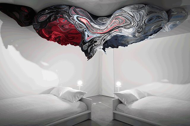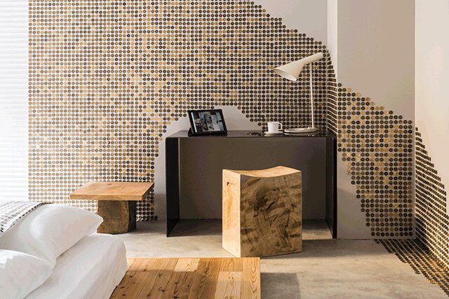 Keigo Fukugaki, Yuto Maeda, Yu Tazawa, and Kenji Daikoku, who joined the team later, wanted to redefine the tenets of hospitality with an all-out dedication and commitment to the artists involved. To do so, they conceived hotel-cum-art gallery BnA (meaning Bed and Art) in 2015 with a single room in an Airbnb in Tokyo’s Ikebukuro neighborhood that was covered in work by Japanese artists JonJon Green and Hideyuki Katsumata. “We envisioned using hospitality as a way to create a new economic model mutually beneficial to the artist and the traveler around installation and space art,” says Tazawa. In fact, artists get a cut of the profits every time their room is booked. Their first hotel BnA Koenji, also in the capital, opened in 2016 with two art rooms, and in May, it was joined by the brand’s second boutique art hotel, BnA Alter Museum in Kyoto, their most ambitious project yet. Fifteen Japanese artists under the direction of nine art directors created 31 permanent art rooms that push boundaries and defy expectations. Consider the gilded Goen No Ma room from Ryuichi Ohira, who explores fate and faith through his interpretation of a shrine, or D/R/M from experimental music band Boredoms that analyzes sound by recreating the human ear through a surreal sensory-driven experience (it comes with a lot of warnings, says Tazawa). As the creative collective expands—another hotel is set to open in Tokyo in 2020—they continue to put art first. “You get somebody’s attention for more than 10 hours and immerse them in our world,” he says. “At the age of information overflow, this is unheard of. It’s a way to create an intimate relationship between an artist and an audience.”