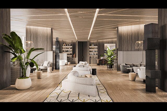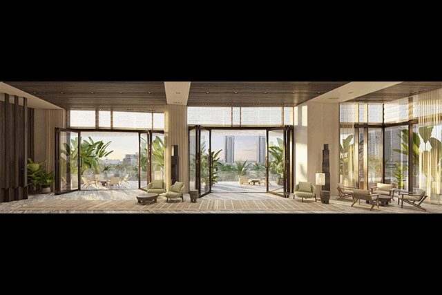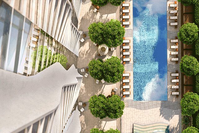 Ward Village > The dynamic new waterfront development Ward Village from the Howard Hughes Corporation effortlessly marries urban and island living. With plans for a LEED Neighborhood Development Platinum certification, the village will be the only neighborhood in Hawaii and the largest in the country to receive that certification from the U.S. Green Building Council. Nestled on 60 lush acres, the site will boast dedicated bike lanes, tree-lined sidewalks, 4,500 homes, and the Kō‘ula mixed-use tower, where its undulating exterior will link “with the natural beauty of the islands, drawing on history to design contemporary ways people and environments can connect,” says architect Jeanne Gang, founder of Chicago’s Studio Gang. This bond to nature translates to thoughtful interiors for the 565 residences and communal spaces by Toronto and New York firm Yabu Pushelberg. “When you enter the space, you get the sense that everything belongs there,” says cofounder Glenn Pushelberg. “It [will have] a quiet gravitas people can enjoy.”